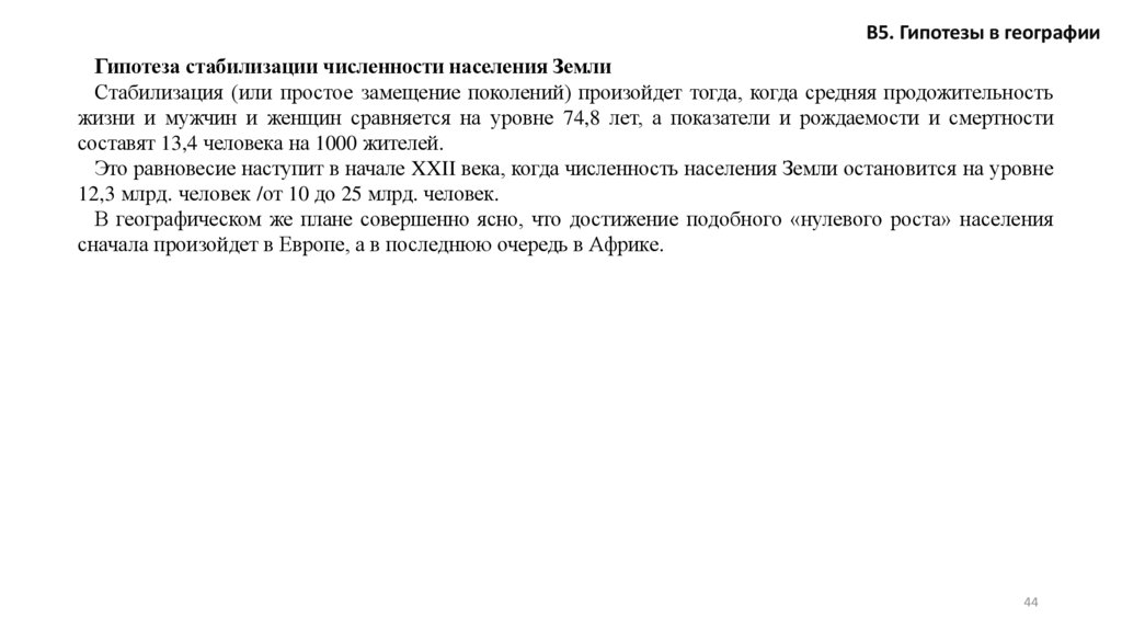 В5. Гипотезы в географииГипотеза стабилизации численности населения Земли