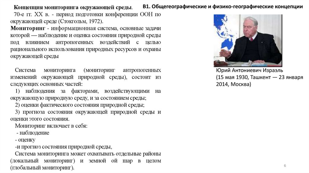 В1. Общегеографические и физико-географические концепцииКонцепция мониторинга окружающей среды.