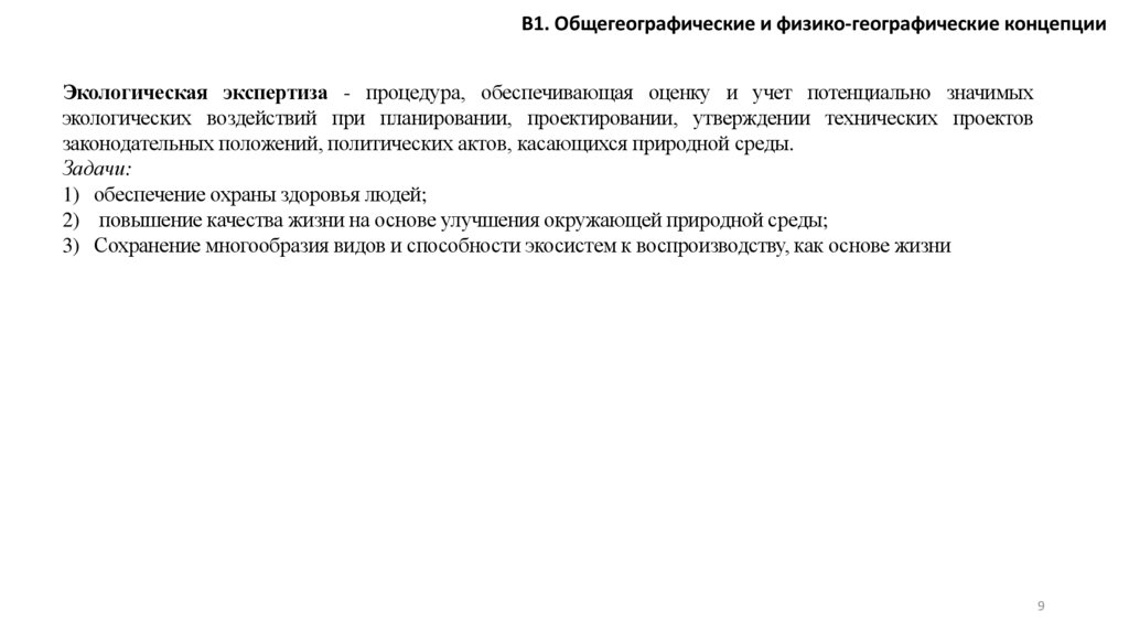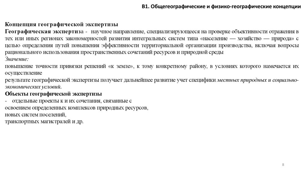 В1. Общегеографические и физико-географические концепцииКонцепция географической экспертизы