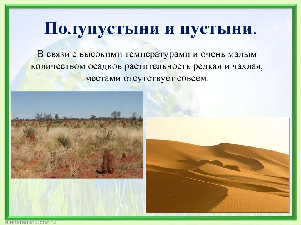 Полупустыни и пустыни.В связи с высокими температурами и очень малым