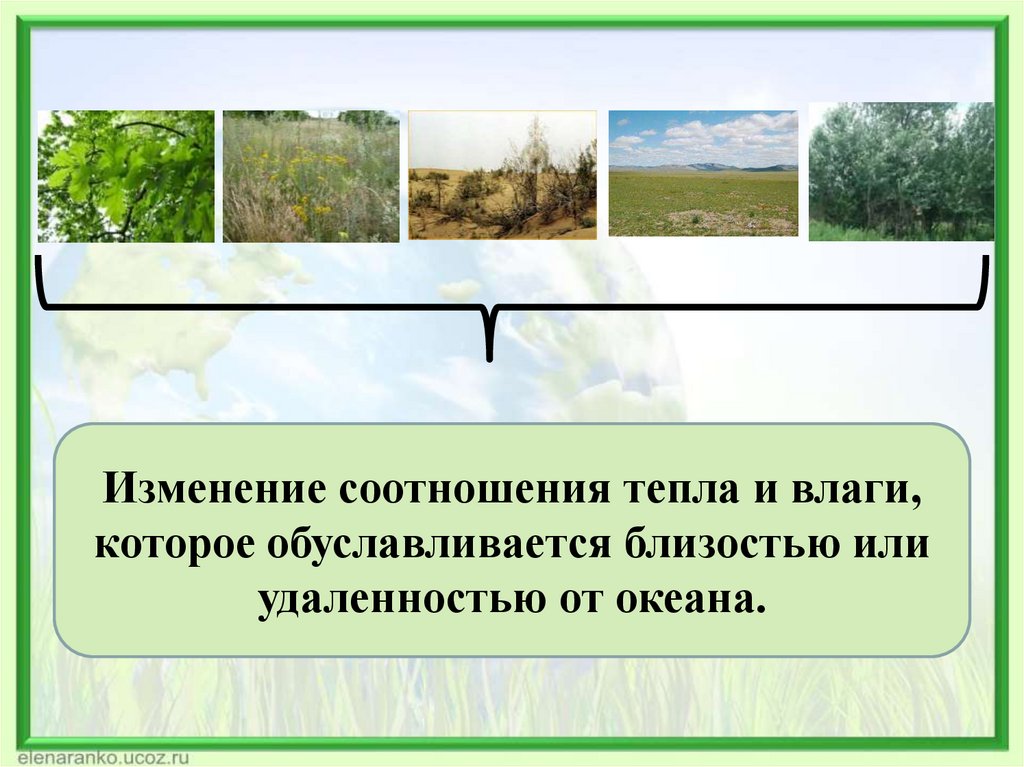 Изменение соотношения тепла и влаги,которое обуславливается близостью или