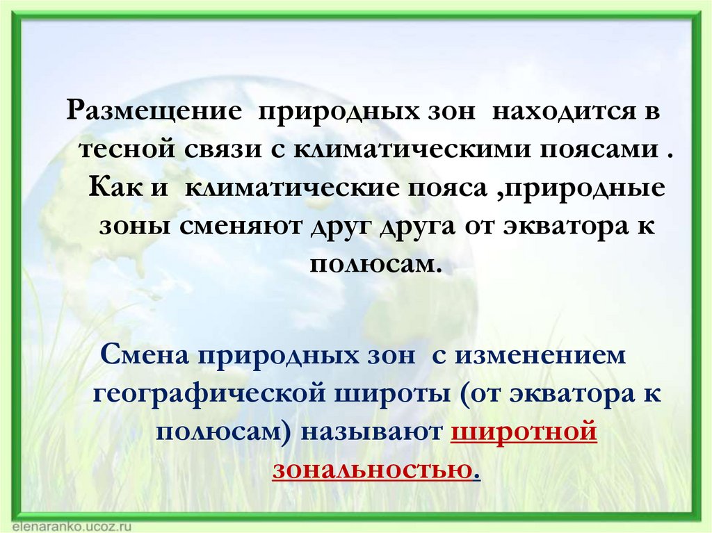 Размещение природных зон находится втесной связи с климатическими поясами .