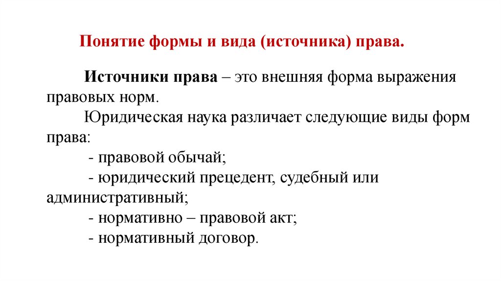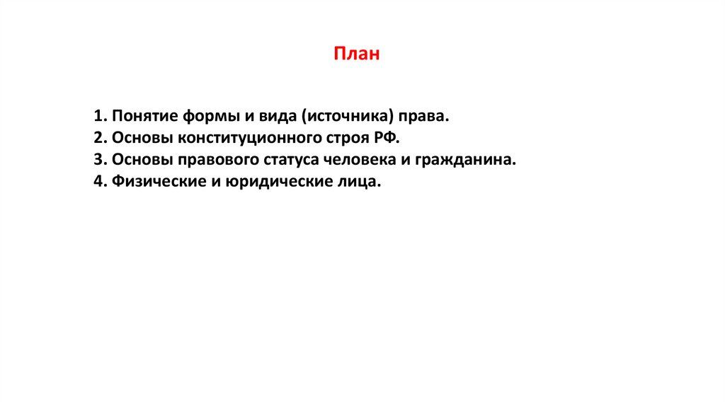 Понятие формы и вида (источника) права. Основы конституционного строя РФ. Основы правового статуса человека и гражданина