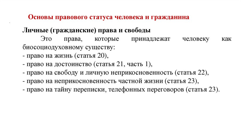 - право на тайну переписки, телефонных переговоров (статья 23).