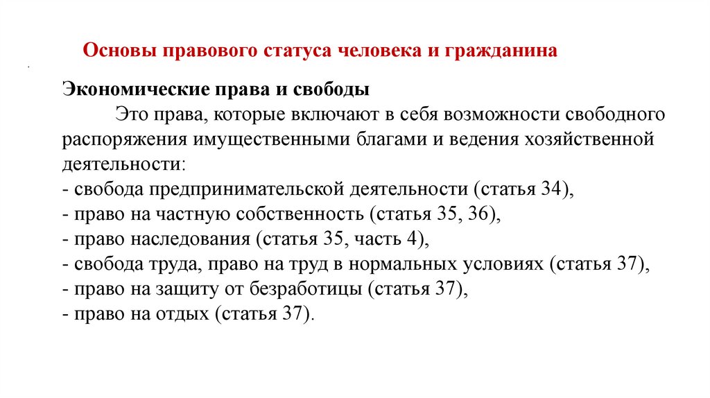 - свобода труда, право на труд в нормальных условиях (статья 37),