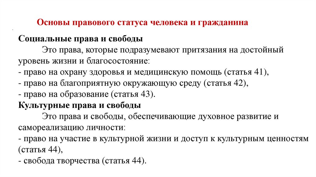 - право на охрану здоровья и медицинскую помощь (статья 41),