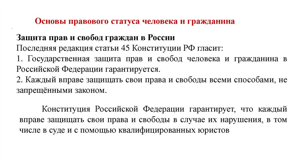 Последняя редакция статьи 45 Конституции РФ гласит: