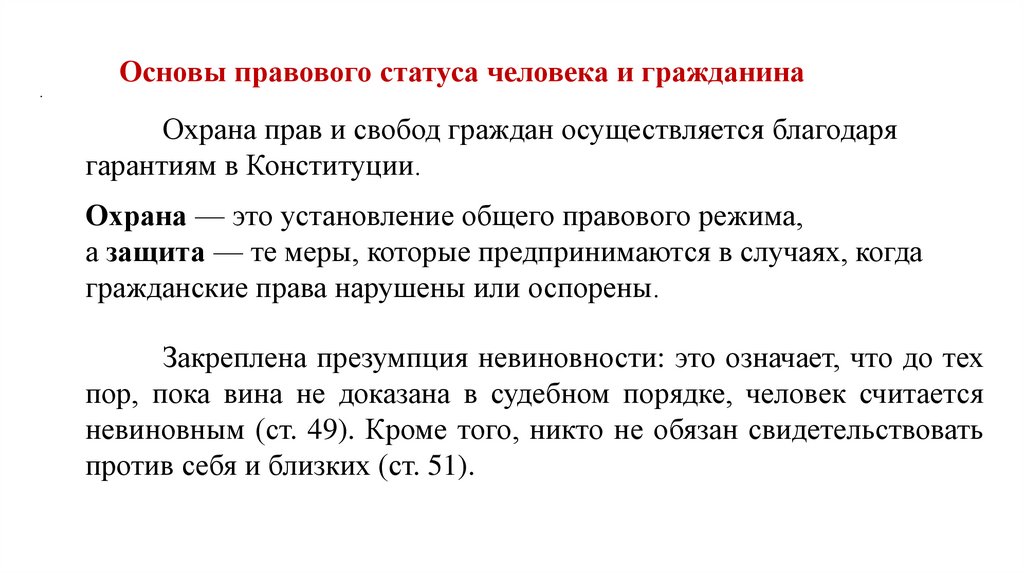 невиновным (ст. 49). Кроме того, никто не обязан свидетельствовать