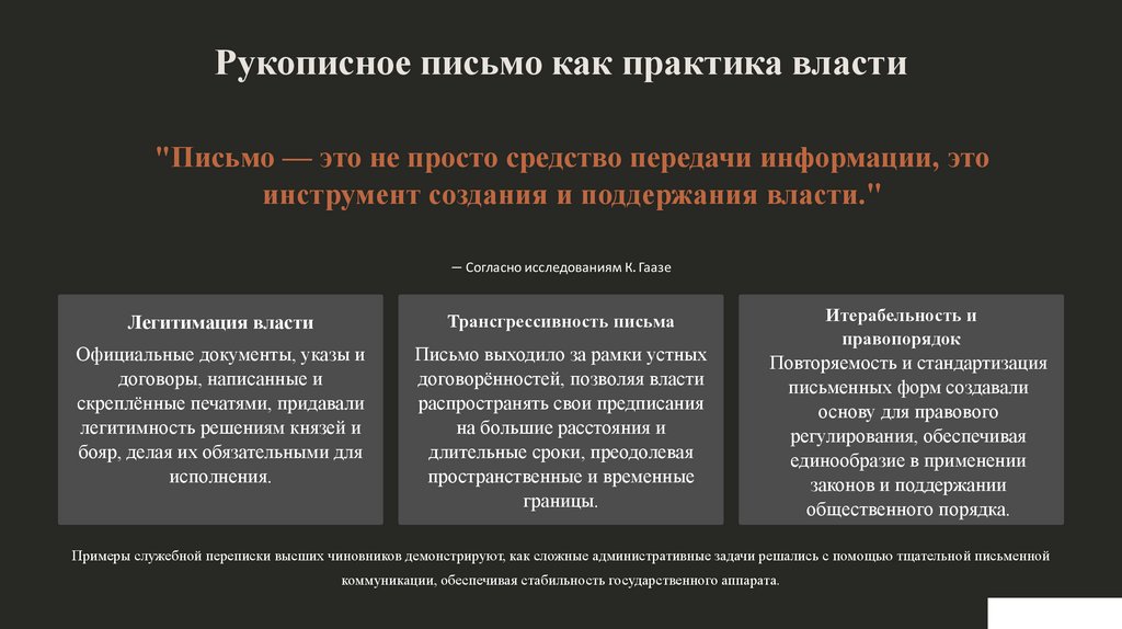 Рукописное письмо как практика власти"Письмо — это не просто средство передачи информации, это