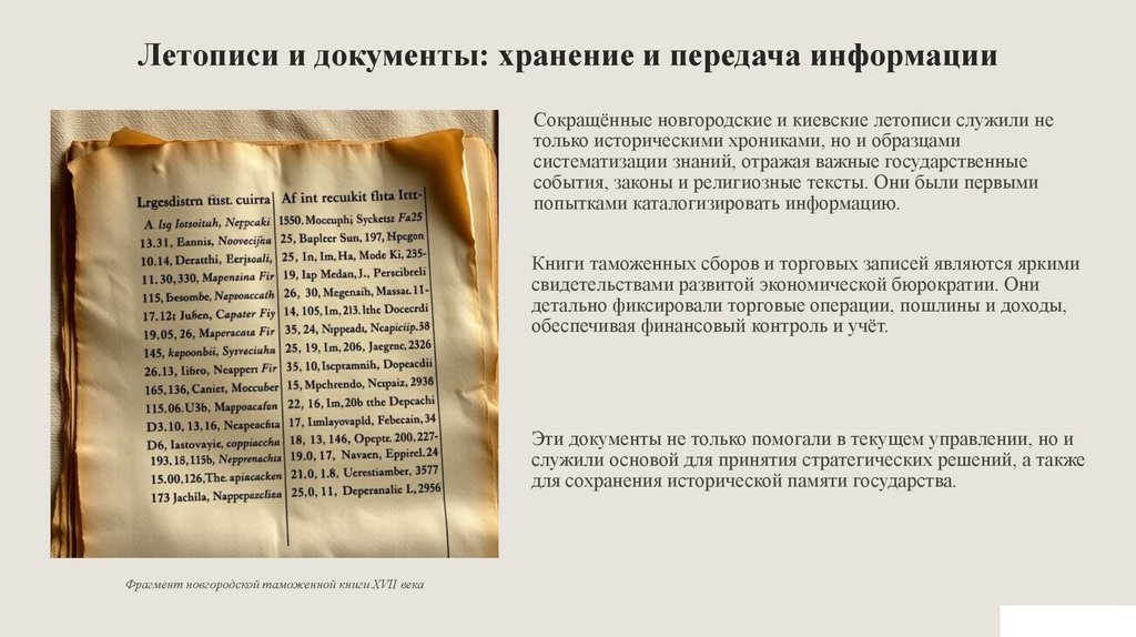 Создание княжеских и церковных архивов стало ключевым шагом