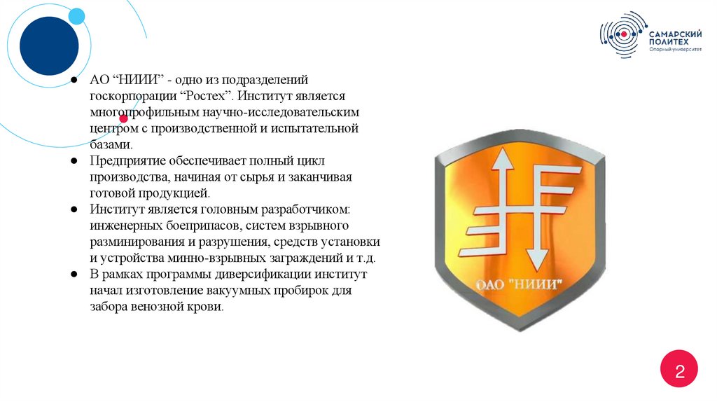 ● АО “НИИИ” - одно из подразделенийгоскорпорации “Ростех”. Институт является