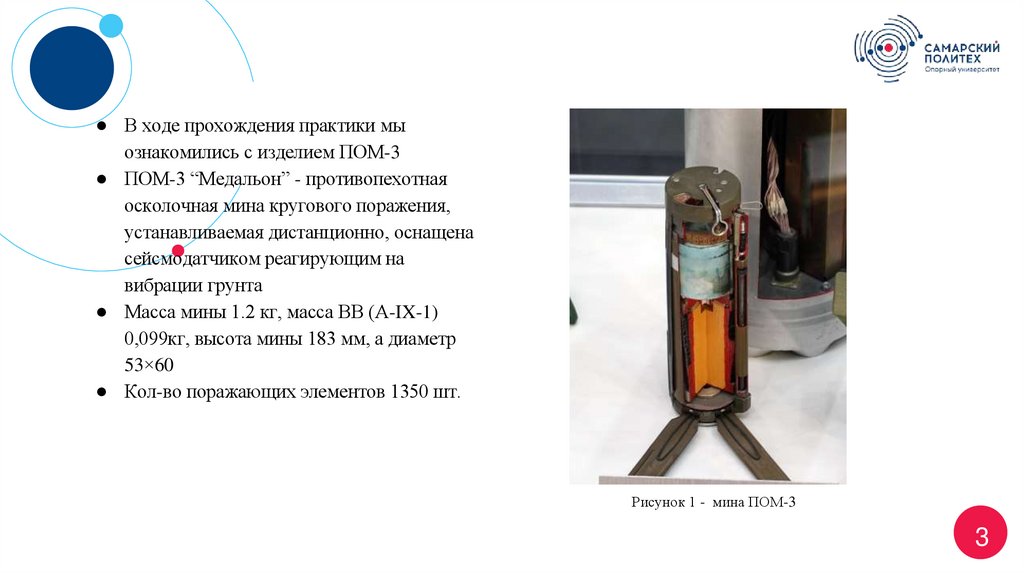 ● В ходе прохождения практики мыознакомились с изделием ПОМ-3