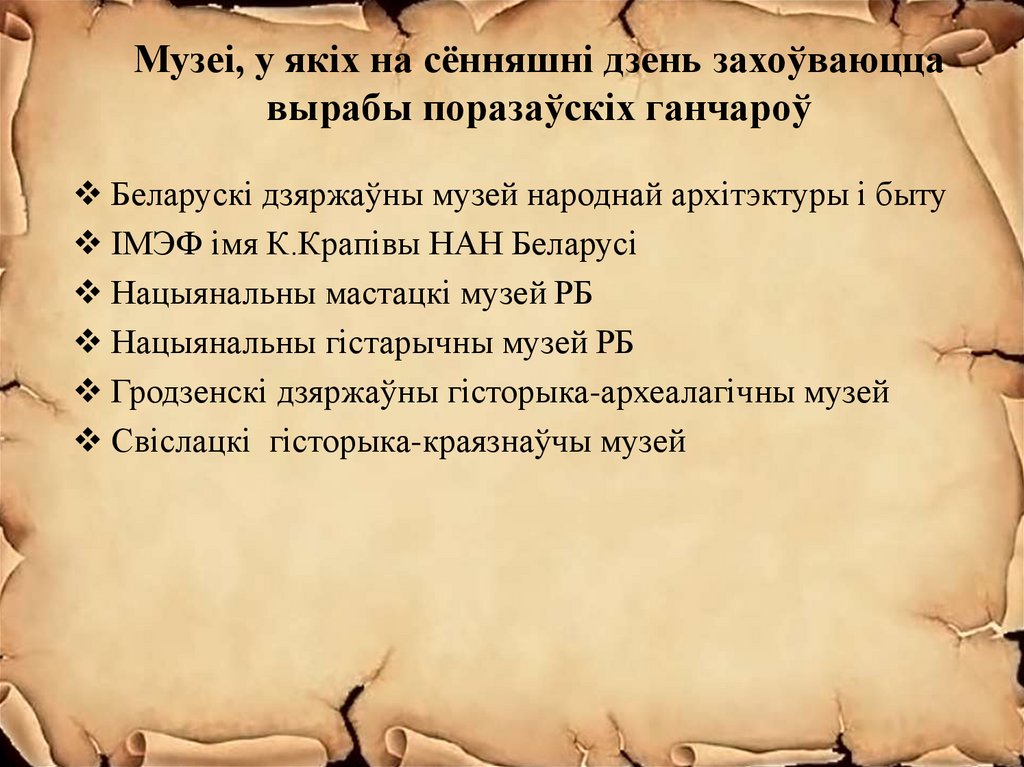 Музеі, у якіх на сённяшні дзень захоўваюццавырабы поразаўскіх ганчароў