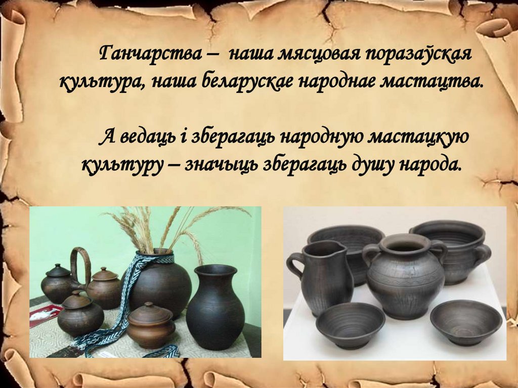 Ганчарства – наша мясцовая поразаўскаякультура, наша беларускае народнае мастацтва.