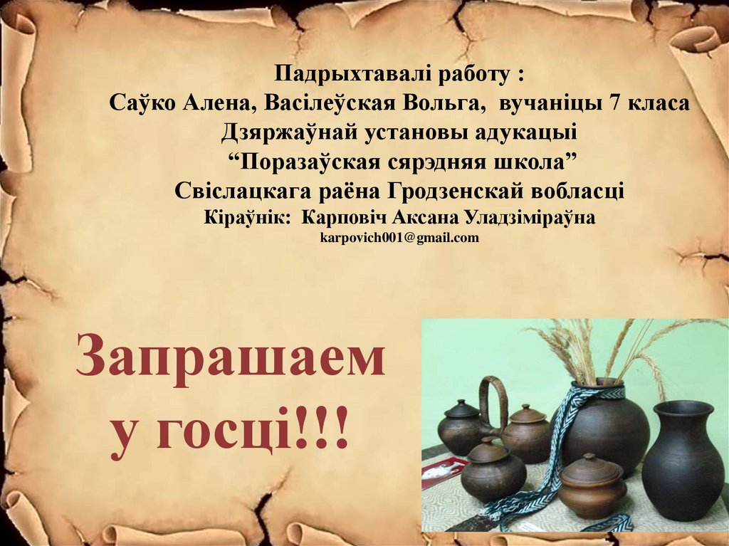 Падрыхтавалі работу :Саўко Алена, Васілеўская Вольга, вучаніцы 7 класа