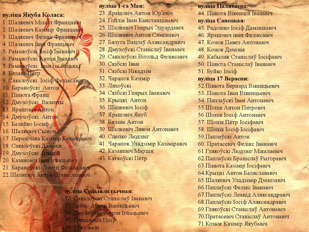 вуліца Якуба Коласа:1. Шалкевіч Міхаіл Францавіч