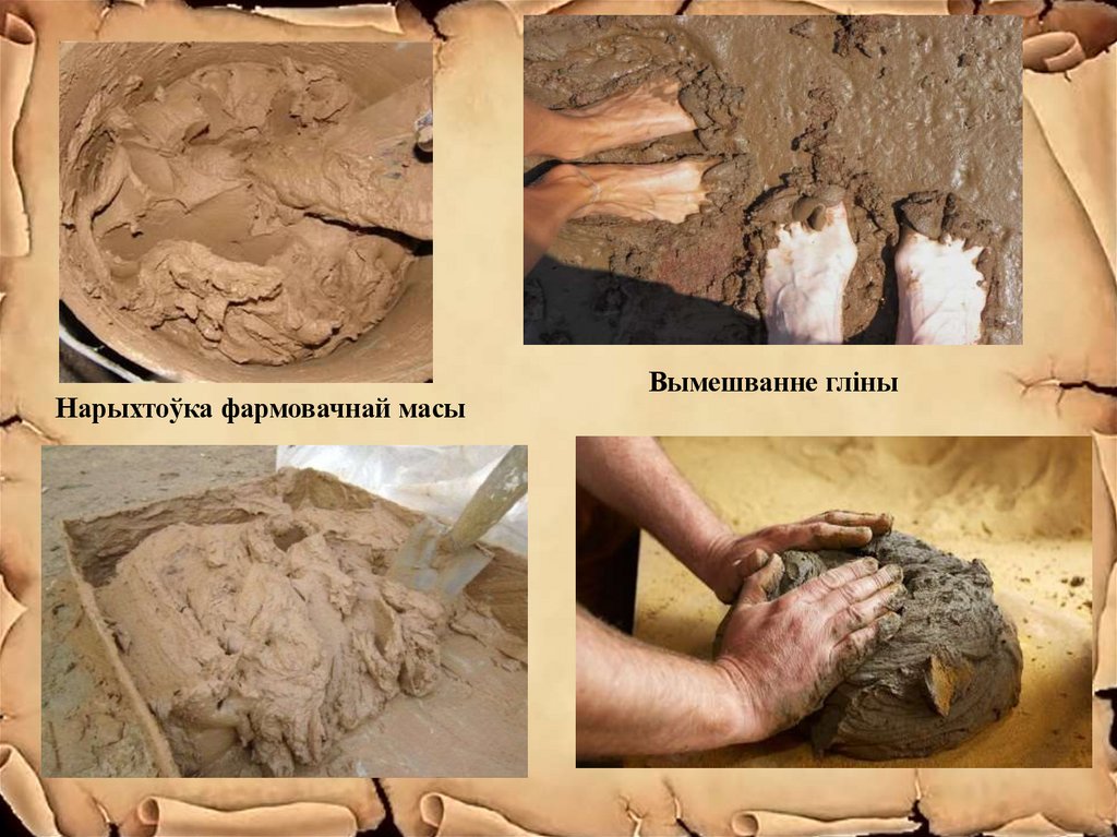 Нарыхтоўка фармовачнай масыВымешванне гліны