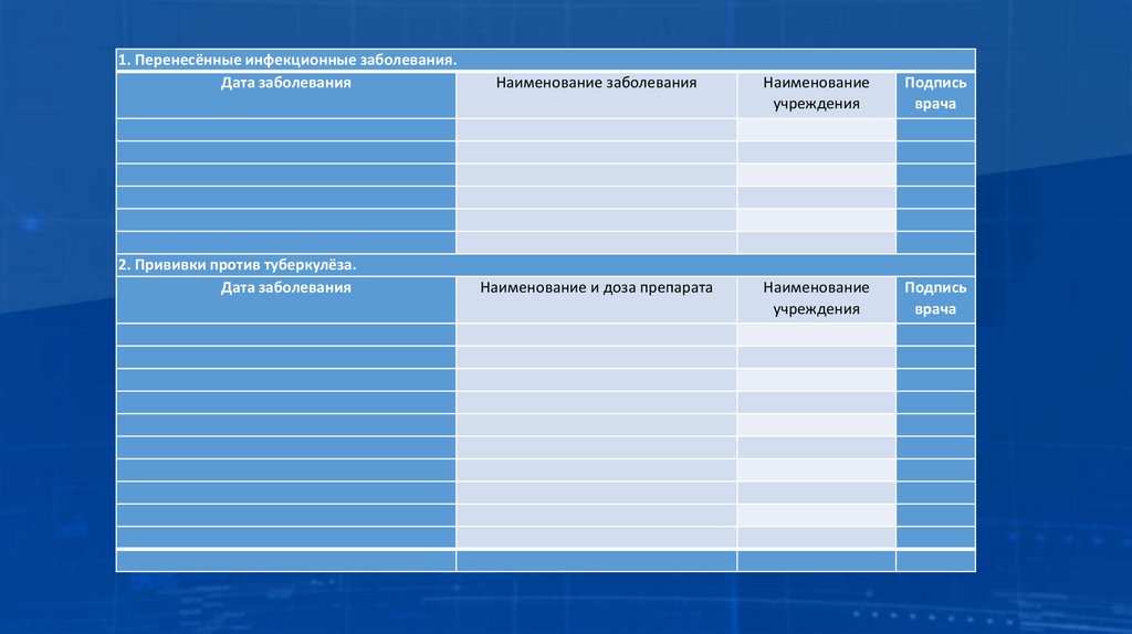 1. Перенесённые инфекционные заболевания.Дата заболевания