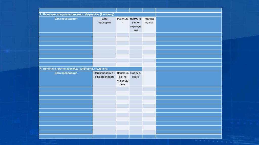 3. Плановая аллергодиагностика туберкулёза (R – манту)Дата проведения