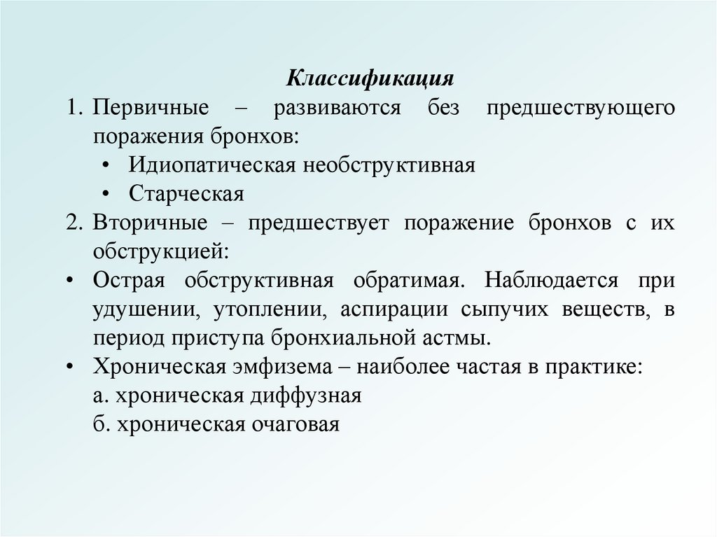 • Первичные, при отсутствии у больного какой - либолегочной патологии или заболеваний других органов,