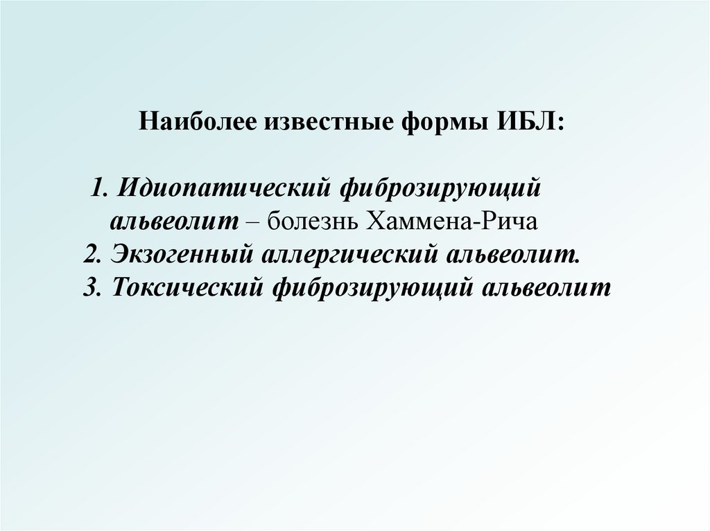 Наиболее известные формы ИБЛ:1. Идиопатический фиброзирующий