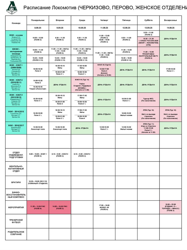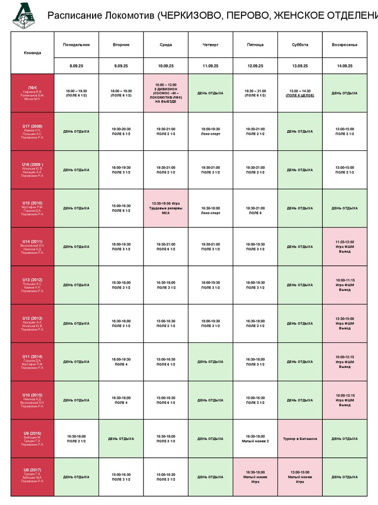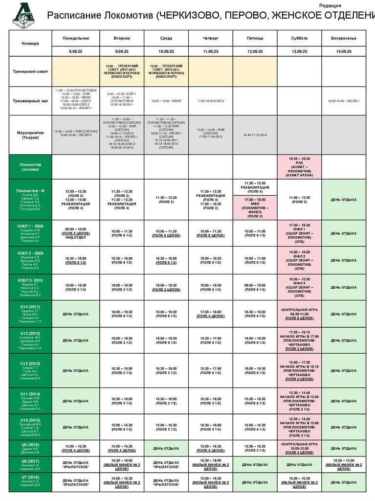 РедакцияРасписание Локомотив (ЧЕРКИЗОВО, ПЕРОВО, ЖЕНСКОЕ ОТДЕЛЕНИ