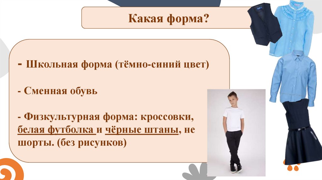 Какая форма?- Школьная форма (тёмно-синий цвет)