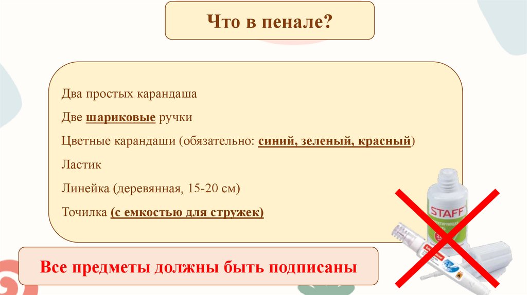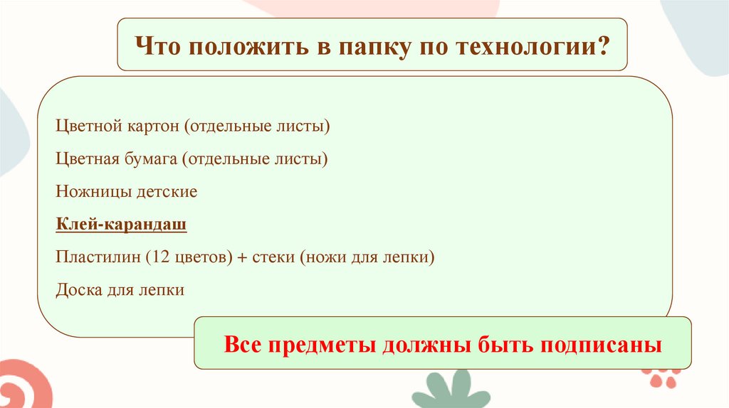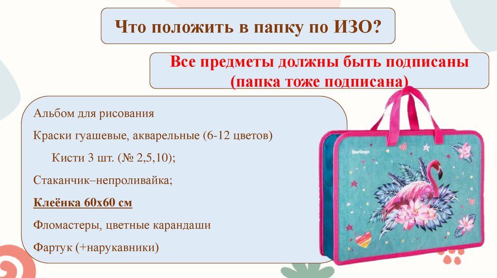 Что положить в папку по ИЗО?Все предметы должны быть подписаны