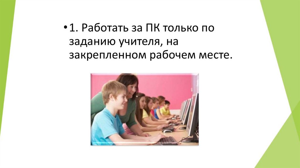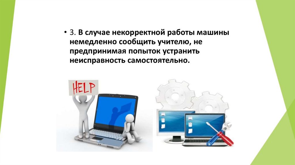 • 3. В случае некорректной работы машинынемедленно сообщить учителю, не
