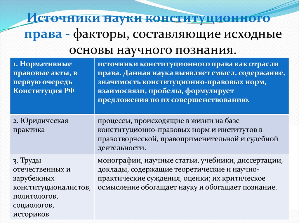 Источники науки конституционногоправа - факторы, составляющие исходные
