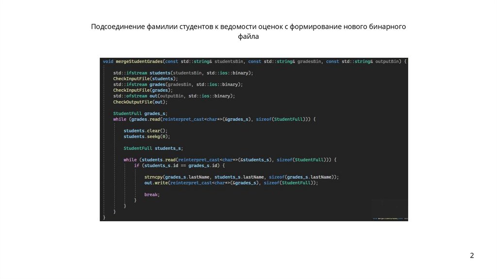 Подсоединение фамилии студентов к ведомости оценок с формирование нового бинарногофайла