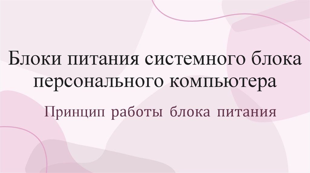 1. Блоки питания системного блока персонального компьютера Принцип работы блока питания