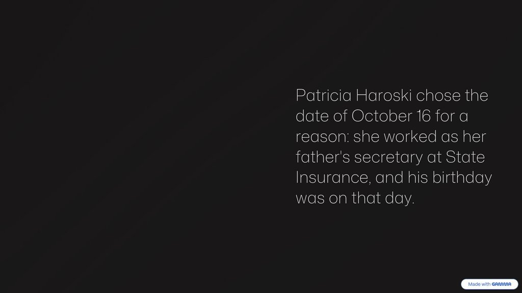 Patricia Haroski chose thedate of October 16 for a