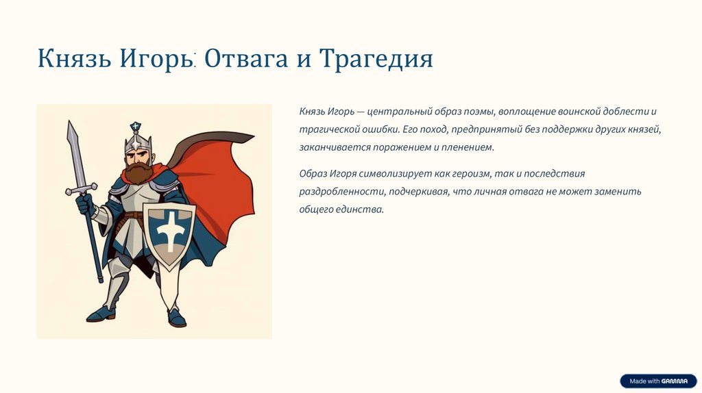 Князь Игорь: Отвага и ТрагедияКнязь Игорь — центральный образ поэмы, воплощение воинской доблести и