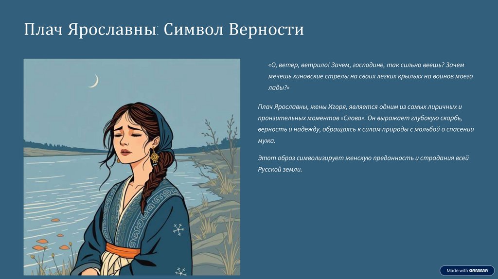 Плач Ярославны: Символ Верности«О, ветер, ветрило! Зачем, господине, так сильно веешь? Зачем
