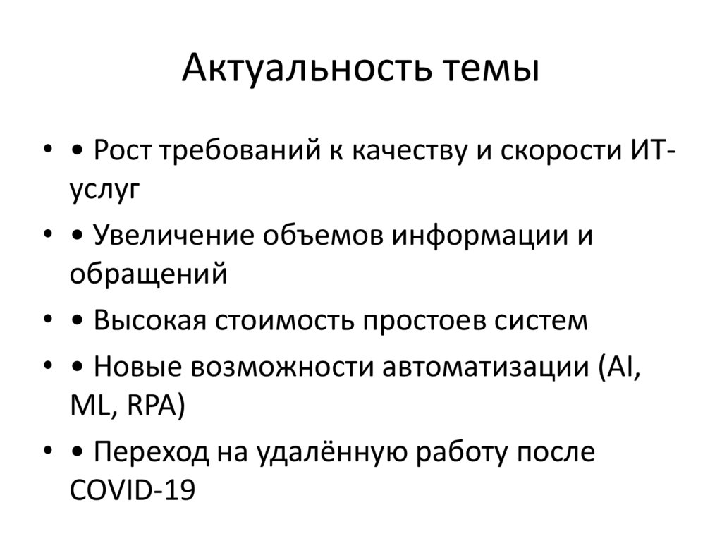 Актуальность темы• • Рост требований к качеству и скорости ИТуслуг