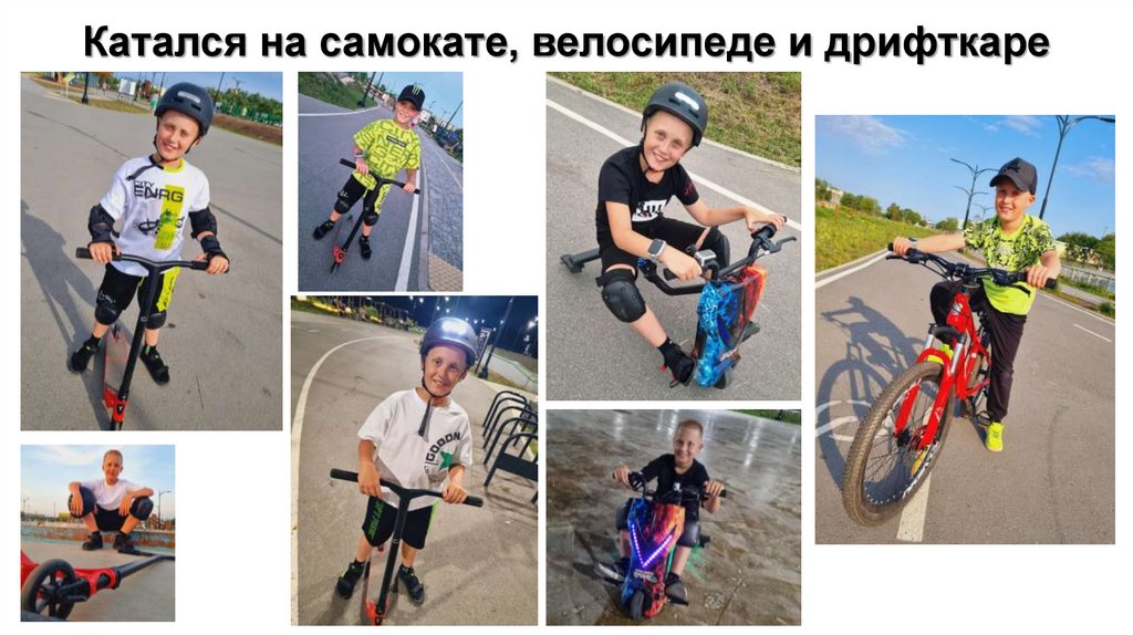 Катался на самокате, велосипеде и дрифткаре12.