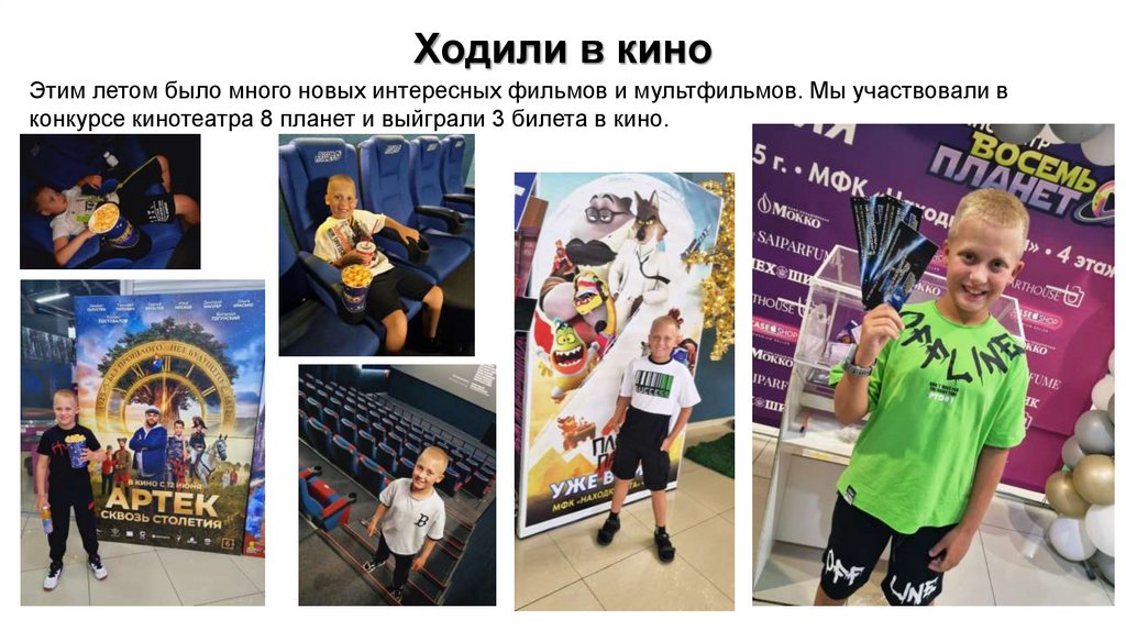 Ходили в киноЭтим летом было много новых интересных фильмов и мультфильмов. Мы участвовали в