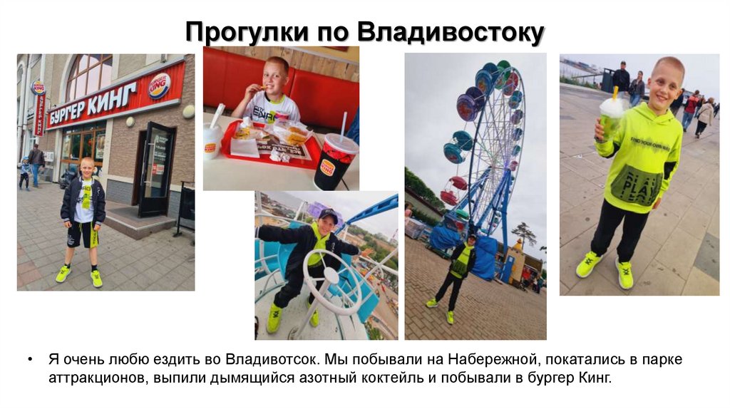 Прогулки по Владивостоку• Я очень любю ездить во Владивотсок. Мы побывали на Набережной, покатались в парке