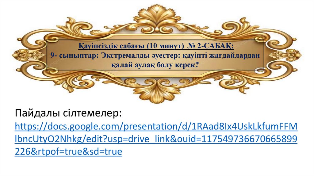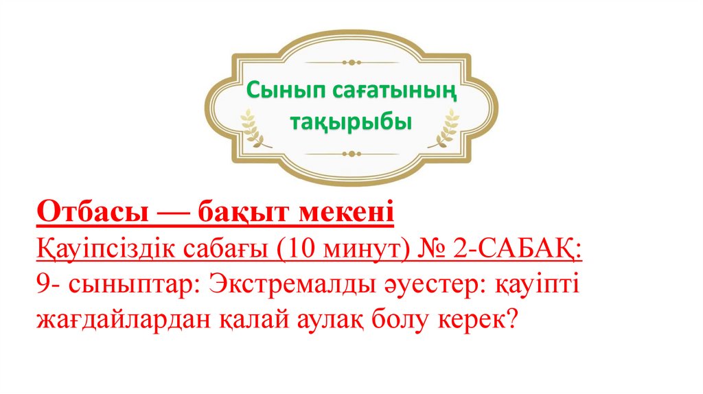Қауіпсіздік сабағы (10 минут) № 2-САБАҚ:
