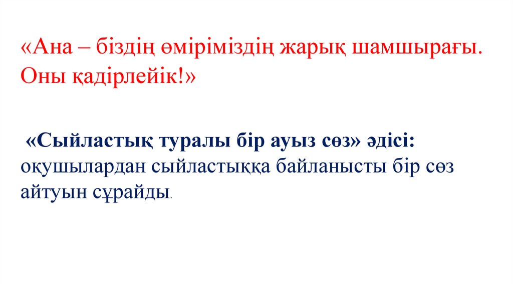 «Ана – біздің өміріміздің жарық шамшырағы.Оны қадірлейік!»