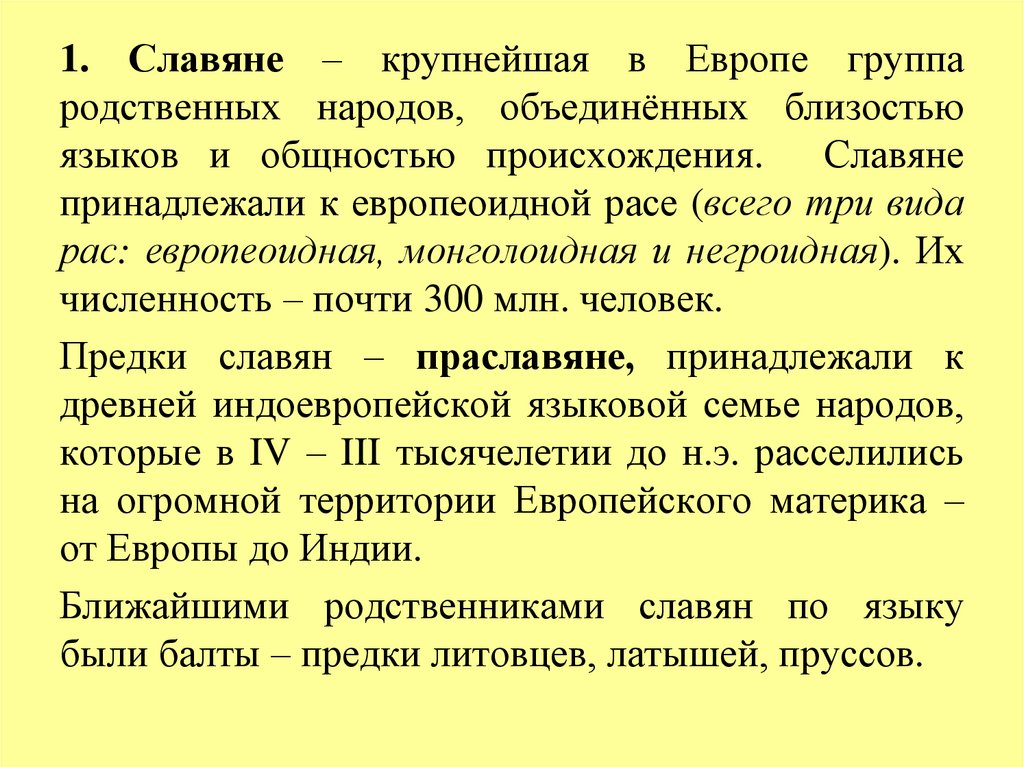 1. Славяне – крупнейшая в Европе группародственных народов, объединённых близостью