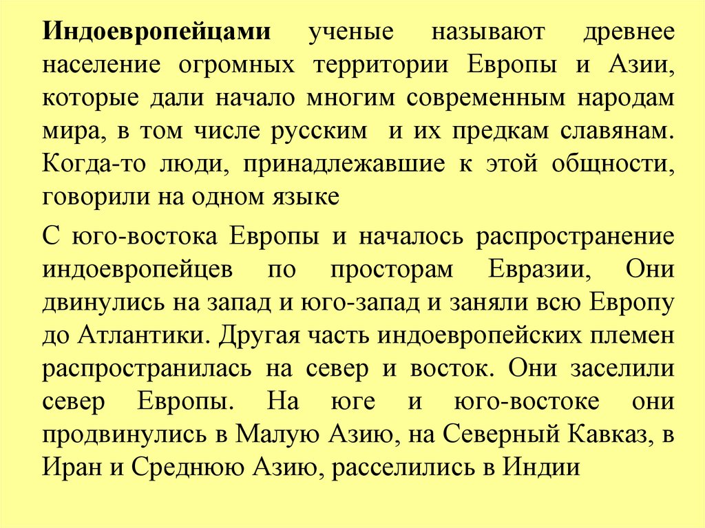Индоевропейцами ученые называют древнеенаселение огромных территории Европы и Азии,