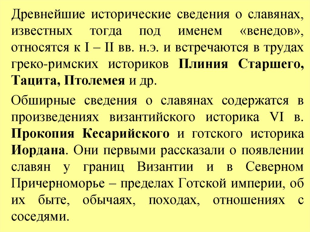 Древнейшие исторические сведения о славянах,известных тогда под именем «венедов»,