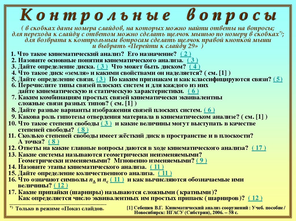 12. Ответы на какие главные вопросы даются в ходе кинематического анализа? ( 17 )