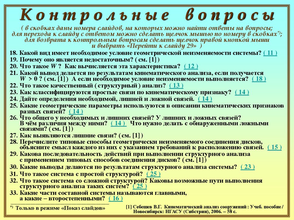 для возврата к контрольным вопросам сделать щелчок правой кнопкой мыши