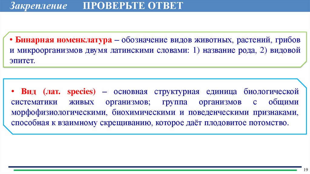 Учебное заданиеПрочитать: §3 Использование бинарной номенклатуры