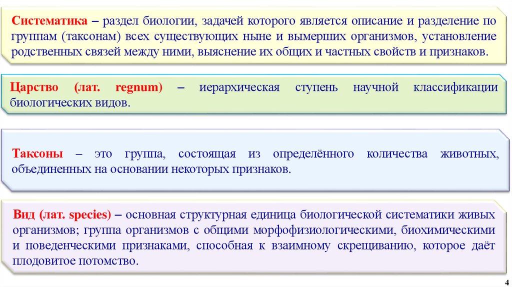 Систематика – раздел биологии, задачей которого является описание и разделение погруппам (таксонам) всех существующих ныне и вымерших организмов, установление