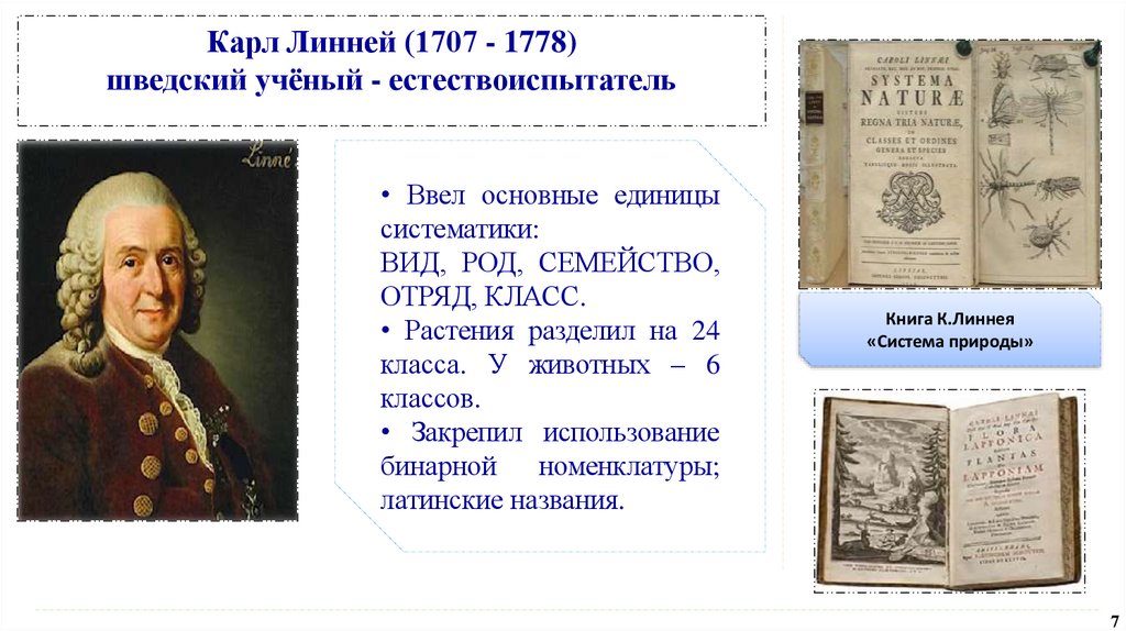 Карл Линней (1707 - 1778)шведский учёный - естествоиспытатель