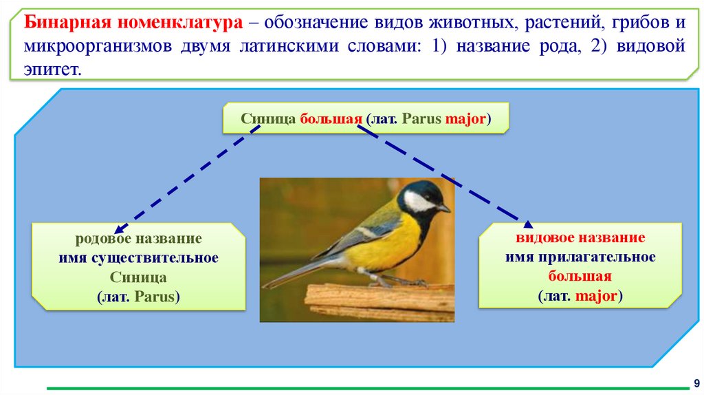 Бинарная номенклатура – обозначение видов животных, растений, грибов имикроорганизмов двумя латинскими словами: 1) название рода, 2) видовой